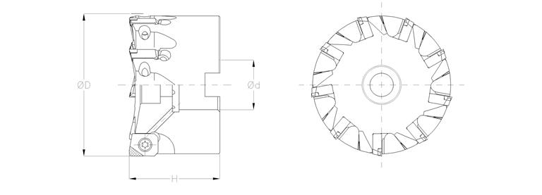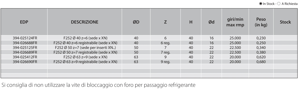Fresa per inserto XN..”passo stretto” corpo in acciaio con passaggio refrigerante