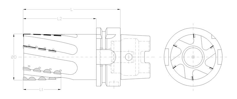 Fresa ad elica di sgrossatura in PCD attacco HSK63A DIN 6973 con passaggio refrigerante